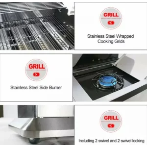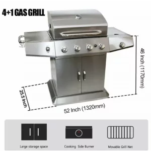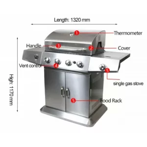 Esta parrilla de gas cuenta con 4 grandes zonas de cocción y 1 zona lateral, lo que la convierte en la opción ideal para disfrutar de una comida al aire libre con su familia y amigos. ¡Convierta su jardín en una segunda cocina y disfrute de una maravillosa experiencia de cocina al aire libre!
